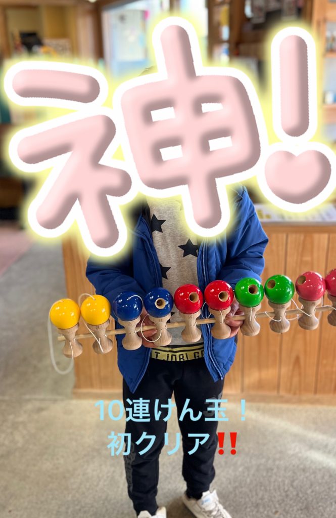 みらい館には、「けん玉」「筒ケン」そして「5連けん玉」更にさらに「10連けん玉があります。