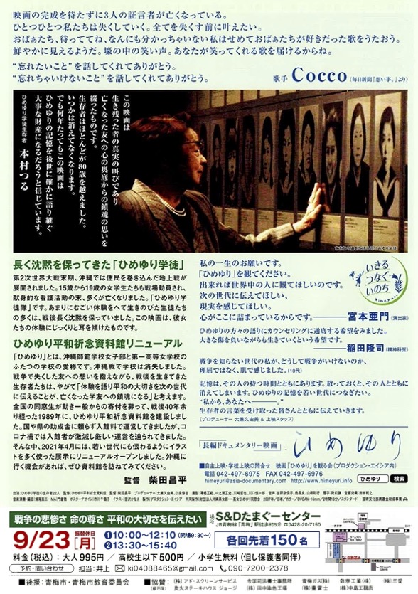 ぜひ映画を観て戦争や平和について考えるとともに、資料の保全にご協力くださいませ。
