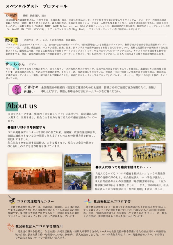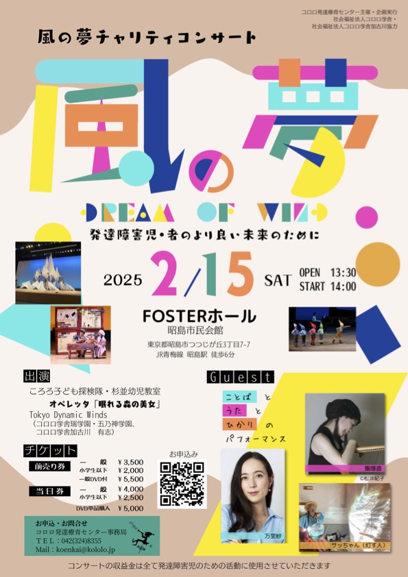 コンサートの収益はすべて発達障碍児・者のための活動のために使わせていただきます。