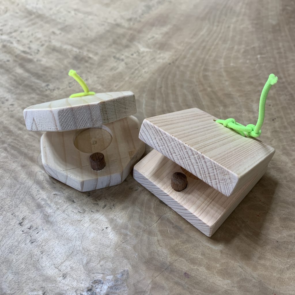 今回は、ヒノキのカスタネットを手作りできるワークショップを開催します。(要申込)