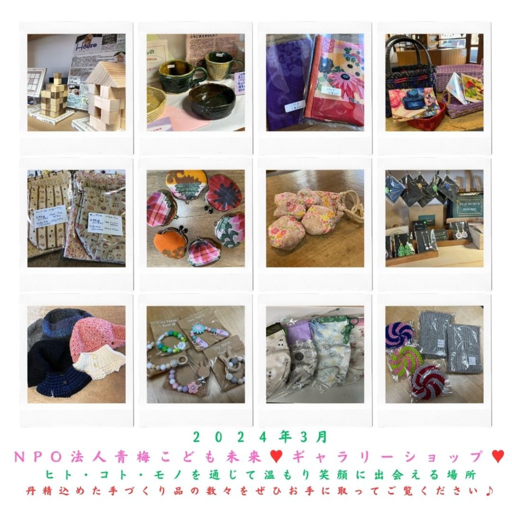 コミュニティテラスみらい館プラスのハンドメイド品の展示販売ブース、ギャラリーショップ。 青梅市や西多摩地区にお住まいのアーティストさんの作品を展示・販売しています。 ここでしか購入できないものもたくさん! ぜひ春を感じに […]