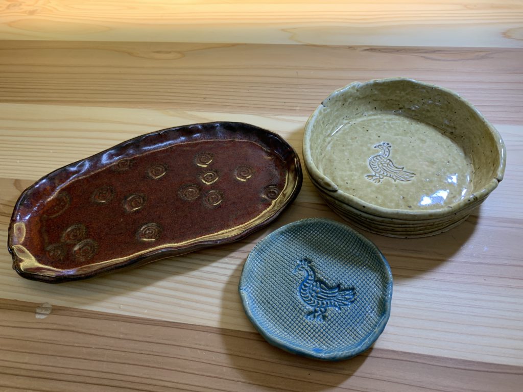 「子育てひろば」の「おはなし会」の講師である恵子さんお手製の陶器の数々